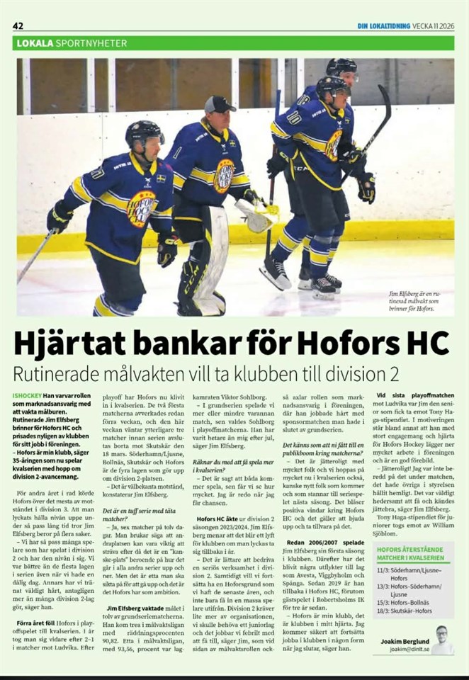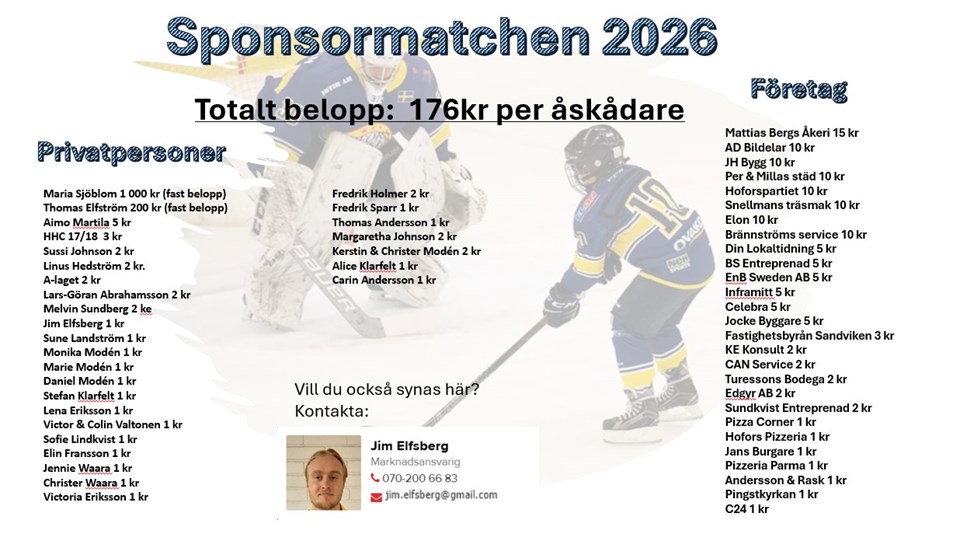 Fyll i din e-postadress för gratis uppdateringar om Hofors HC