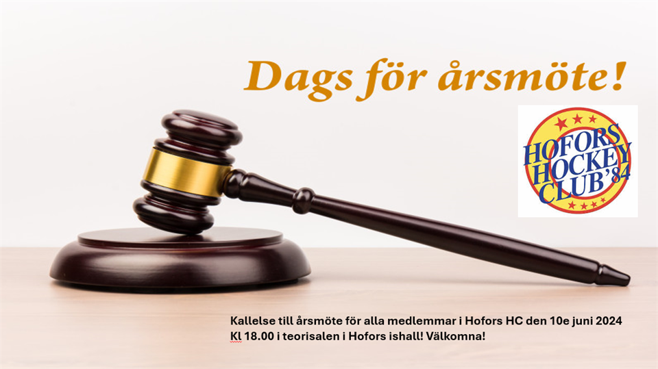 Hofors HC kallar alla sina medlemmar till årsmöte måndagen den 10e juni 2024 kl. 18.00 i teorisalen i Hofors ishall. Välkomna! Hofors HC 19 maj 2024 0kommentarer