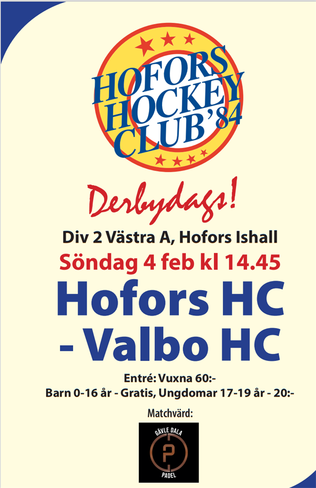 Det är dags att spela den uppskjutna hemmamatchen mot Valbo HC från december förra året. Vi spelar för första gången en söndag på den något udda tiden 14.45. Hofors kommer från en snöplig poängförlust mot Orsa IK där vi går mot seger men Orsa kvitterar samtidigt som slutsignalen ljuder. Vi har full trupp som vi vill ha den och kan mönstra ett fullt lag vilket kommer krävas i det kommande kvalet. Alla spelare kommer behövas och vi får räkna med skador Varmt välkomna till den första och enda söndagsmatchen i årets serie. Dörrarna öppnas 13.45 och pucken släpps 14.45. Det här blir ett bra test inför det som komma skall. Vi måste visa att vi kan stå upp mot bra lag som serieledande Valbo och killarna vill gärna ha ert stöd. Söndagsfikat finns i cafeterian och puckkastning sker i andra periodpausen. Stort tack till Gävle Dala Padel som är matchsponsor för morgondagens match. Vi ses i hallen i morgon! Hofors HC 3 feb 2024 0kommentarer