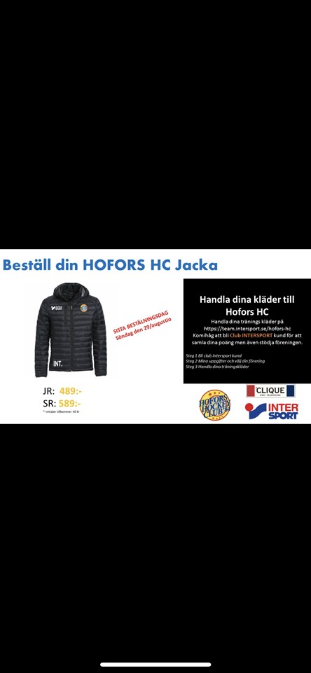 På onsdag finns möjlighet att prova kläder och ledarjackor inför säsongen! Onsdagen den 25 aug mellan kl 17-19 utanför ishallen (vid regn inomhus) Välkomna!