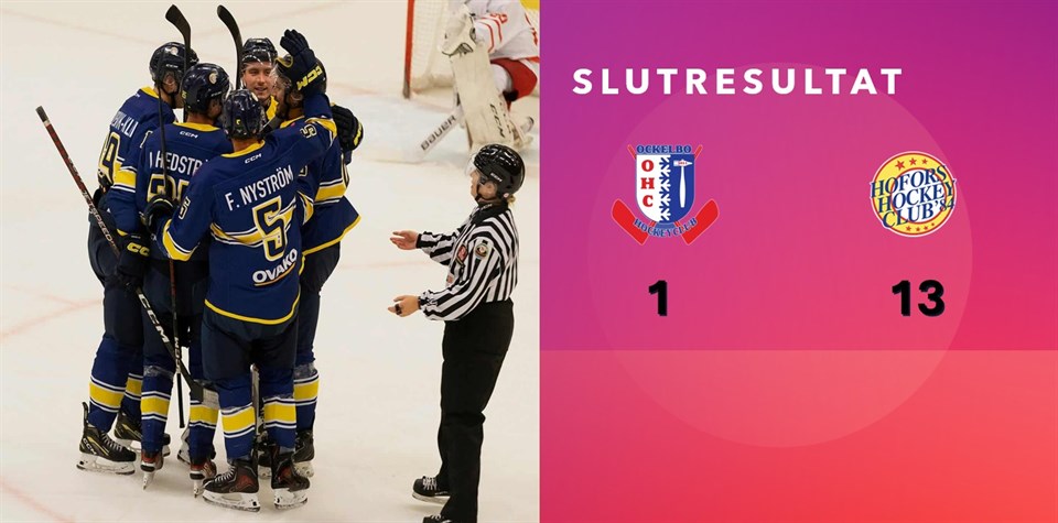 Ockelbo HCs utvecklingslag är fast förankrat i botten av årets division tre Gävleborg och när serieledande Hofors HC kom på besök var det match i en period innan Steelers gled iväg målmässigt. Noteras kan att Isak Andersson gjorde sin första fulla match i HHC tröjan med en räddningsprocet på 94.12% får det väl sägas vara en helt ok debut. Siffrorna slutade på 1-13 till HHC efter periodsiffrorna (1-2, 0-6. 0-5). Skotten var 17-60. Vi säger grattis till segern till alla ledare och spelare! Ny betydligt tuffare match väntar hemma mot ett formstarkt Hille/ÅIK IK. Vi gläds åt vinsten idag sen laddar vi om och kommer taggade till fredagens hemmamatch. Målskyttar i Ockelbo var: 0-1 Isak Hansson-Johansson (Alfred Elfsberg) 1-2 Emil Eriksson (Gustav Nordström) 1-3 Isak Hansson-Johansson (Alfred Elfsberg, Robin Nordh) 1-4 William Johansson (Emil Eriksson, Gustav Nordström) 1-5 Isak Hansson-Johansson 1-6 Robin Nordh (Isak Hansson-Johansson, Linus Hedström) 1-7 Linus Hedström (Alfred Elfsberg, Isak Hansson-Johansson) 1-8 Robin Nordh (Isak Hansson-Johansson, Alfred Elfsberg) 1-9 Linus Hedström (Emil Eriksson, Gustav Nordström) 1-10 Isak Hansson Johansson (Emil Eriksson, Alfred Elfsberg) 1-11 Robin Nordh (Linus Hedström, Nils Elfsberg) 1-12 Gustav Nordström (Emil Eriksson, Nils Elfsberg) 1-13 Felix Lilja (Jan Novák, Hampus Lindberg)