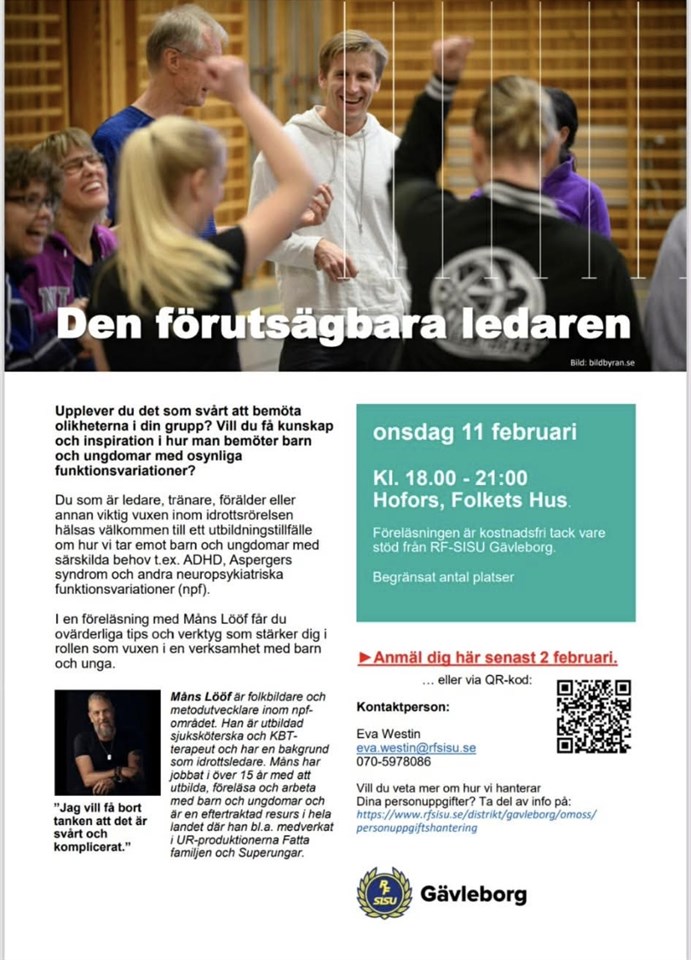 Föreningen bjuder in till en kostnadsfri förläsning med Måns Lööf, onsdag 11/2 på Folkets hus. Sista anmälningsdag 2/2. En uppskattad föreläsare med fokus på npf samt tips och råd till föräldrar och vuxna som arbetat med barn. Vi uppmanar er föräldrar att komma och delta. Se befogad bild för mer information om innehåll samt hur man anmäler sig.